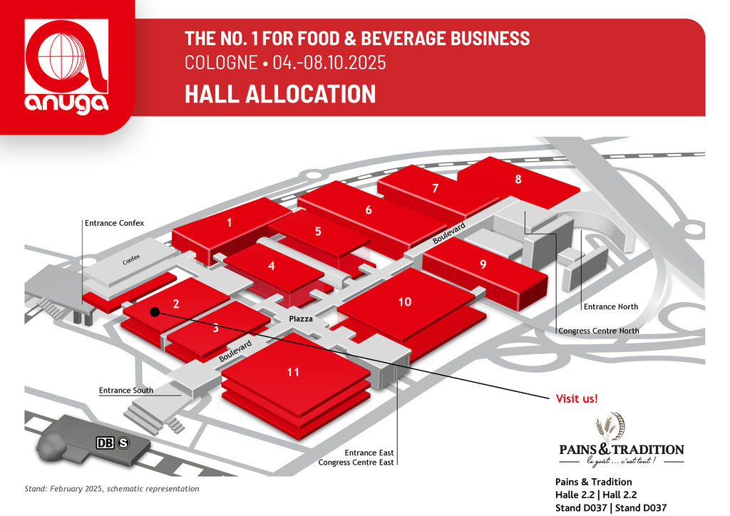 Retrouvez-nous à Anuga ! Du 04 au 08 octobre, nous serons présents à Anuga, le salon incontournable de l’agroalimentaire. Venez nous rencontrer Hall 2.2 – Stand D037 et découvrir le goût authentique de nos pains et viennoiseries artisanales. On vous attend avec plaisir pour une dégustation gourmande !